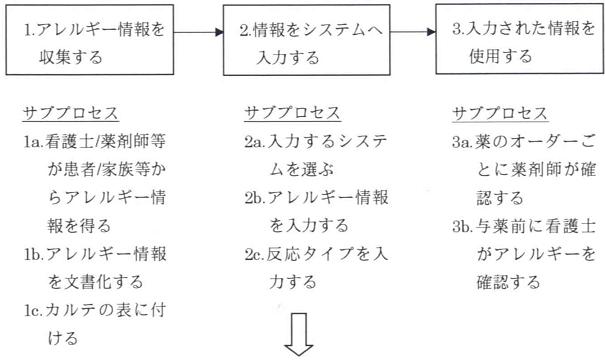 例えば、図表1は、患者・家族等から薬に対するアレルギーの有無を聞いて、情報システムに入力し、与薬の際に使用するというプロセスに対してFMEAを適用したものである。全体のプロセスを数ステップのフロー図に表した後、それぞれのステップをより詳細なサブプロセスに分解する。その上で、サブプロセスごとに起こりそうなエラーを失敗モードとして書き出していく。表の右端のRPN(Risk Priority Number)は、対策の必要性を数値として示してあり、一般に、失敗モードの発生度×引き起こされる影響の致命度×影響に至る前の検出度で算出される。RPNは、非常に多くの失敗モード度の中から、どれを優先的に対策を施すべきなのかを選び出すのに役立つ。